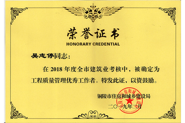 • 吳志停工程質(zhì)量優(yōu)秀工作管理者
